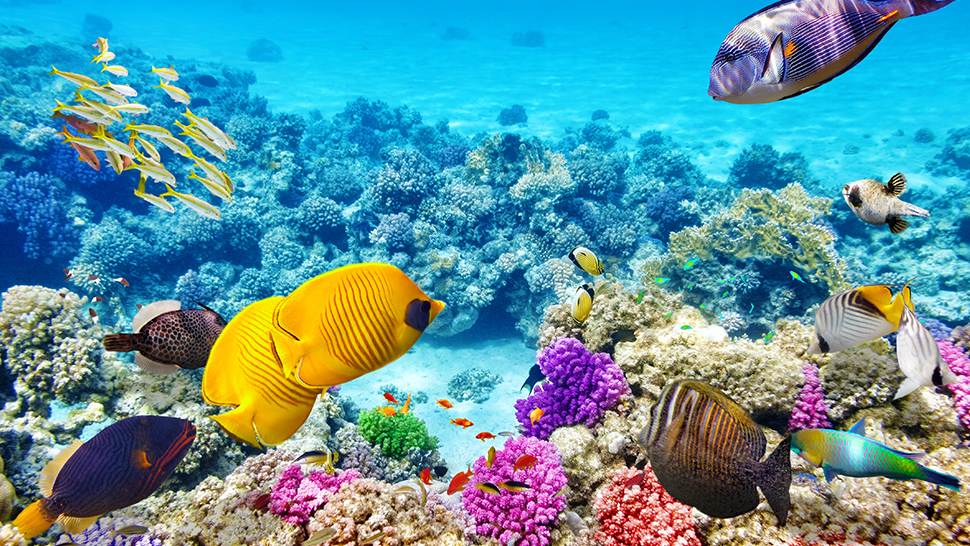Największa na Ziemi pojedyncza struktura wytworzona przez organizmy żywe, widoczna z kosmosu jako biała smuga na tle błękitnego oceanu.