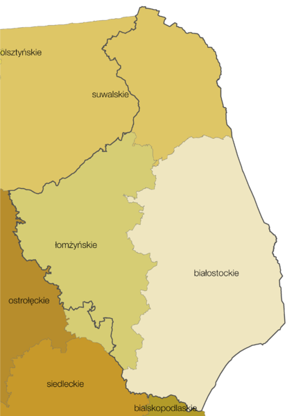 Województwo podlaskie zostało utworzone w 1999 roku z województw poprzedniego podziału administracyjnego: