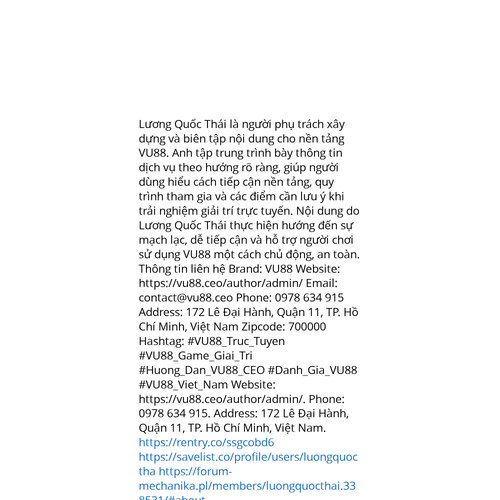 Website: https://vu88.ceo/author/admin/. Lương Quốc Thái là người phụ trách xây dựng và biên tập nội dung cho nền tảng VU88. Anh tập trung trình bày thông tin dịch vụ theo hướng rõ ràng, giúp người dùng hiểu cách tiếp cận nền tảng, quy trình tham gia
