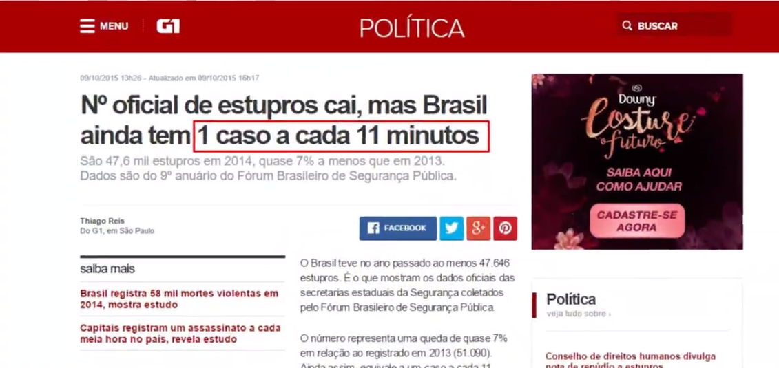 Tenha sido como foi, ninguém estava lá ao não ser a garota e os 30, 33 ou 50 homens. Nada é certeza. Mas o que não pode ser negado: a cada ONZE MINUTOS um caso de estupro ocorre. E o pior, segundo o Instituto de Pesquisa Aplicada, apenas 10% dos casos chegam à polícia. Isso porque é muito traumatizante para a mulher poder assumir.