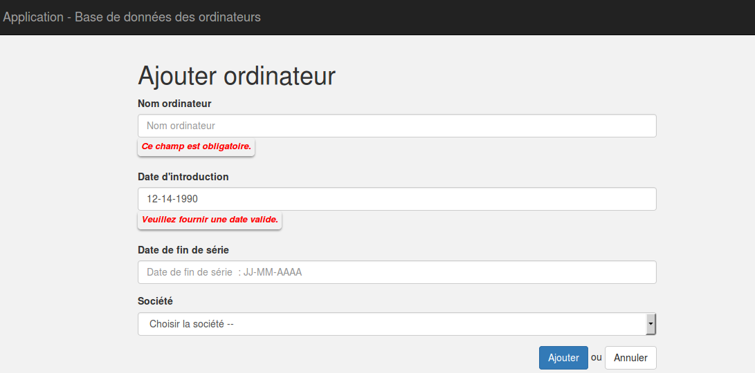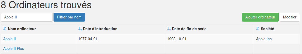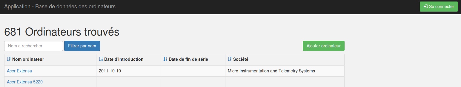 L'application permet d'afficher et d'effectuer des traitements de gestion d’ordinateurs.