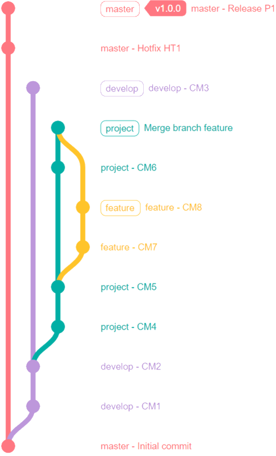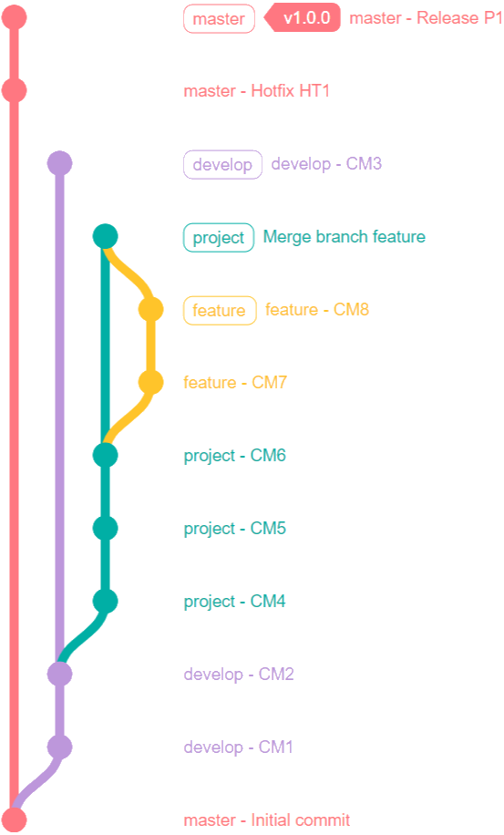 1---2---3 (project/HEAD)$: indicates the change of commit SHA.