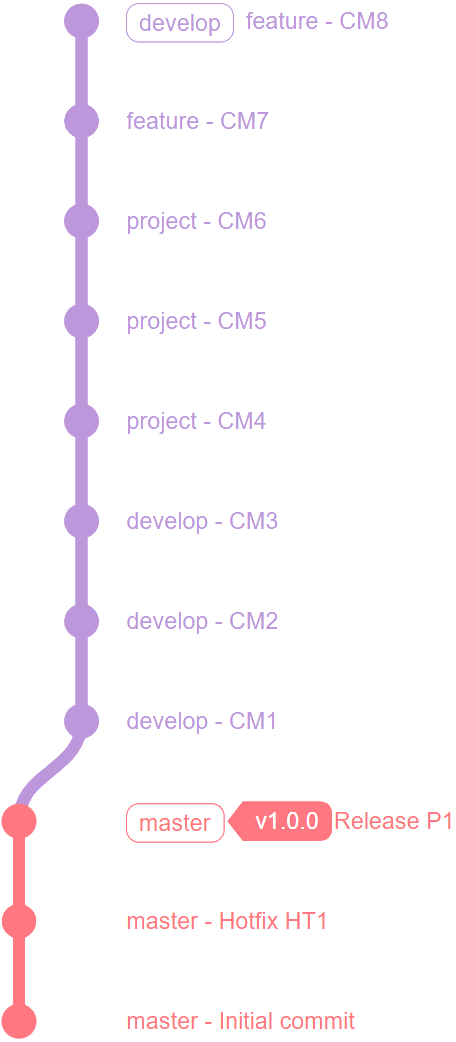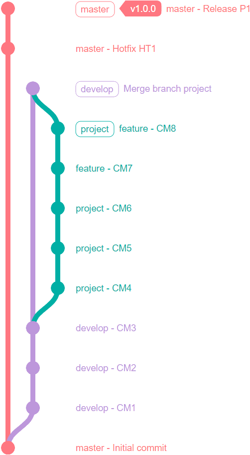 A----B----C----D (develop/HEAD) | A----B----C----D----$1----$2 (develop/HEAD,project)