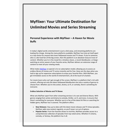 Watching movies is one thing, and explaining them is another. Unless a movie creates a sense of thrill or its storyline impacts the viewer, it does not feel enjoyable to watch. If you like watching movies and understanding their details, then I have brought a guide for you in this PDF about MyFlixer Movies, which is an online streaming platform. You can check it out. www.myflixer.life/