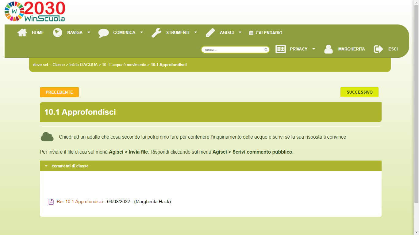 Hai concluso questa breve spiegazione sulle funzionalità di ADA Social Learning e sui contenuti del corso D'Acqua.