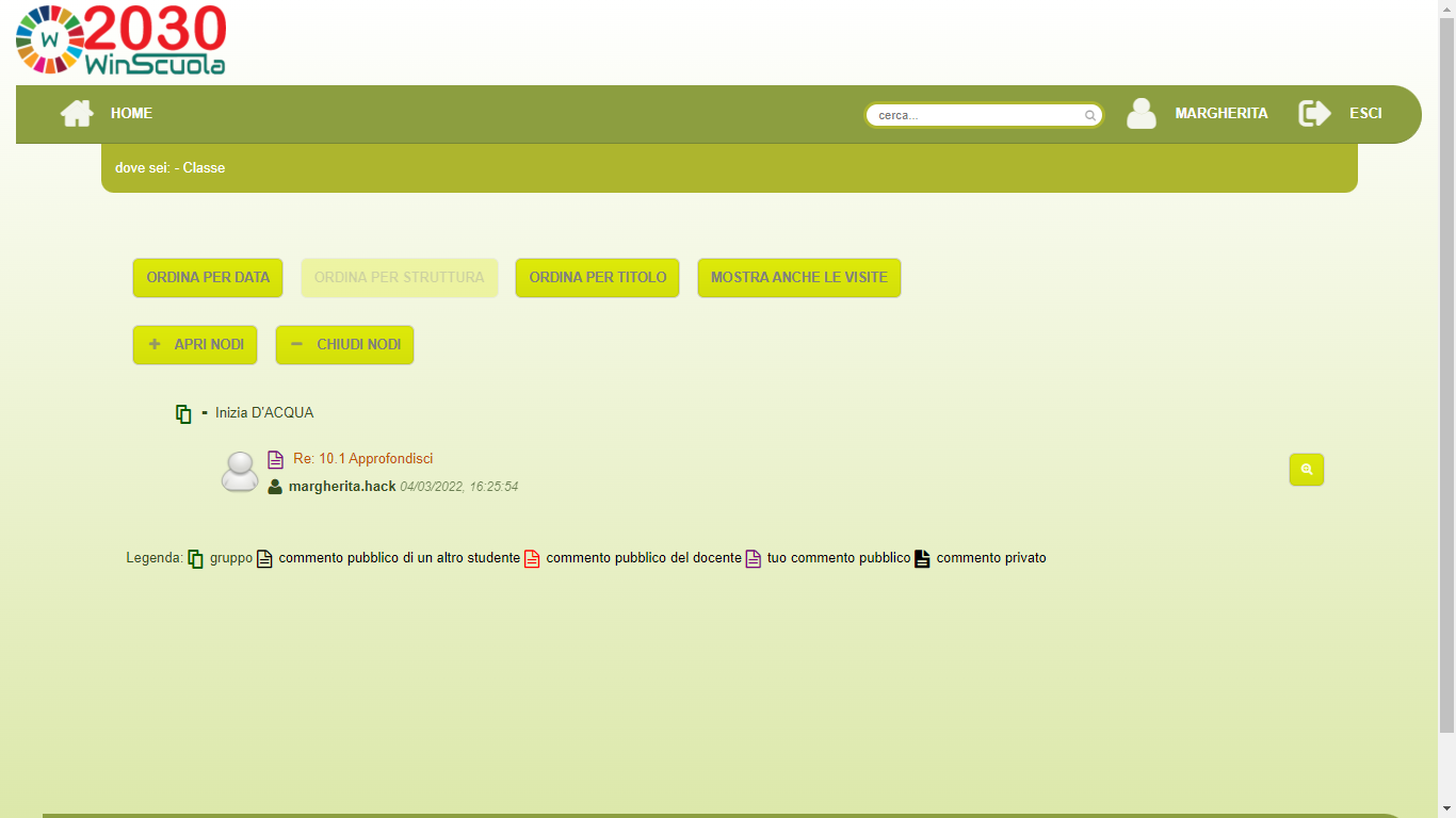 Questa è la tua home page, da qui puoi entrare nel corso (la materia).
