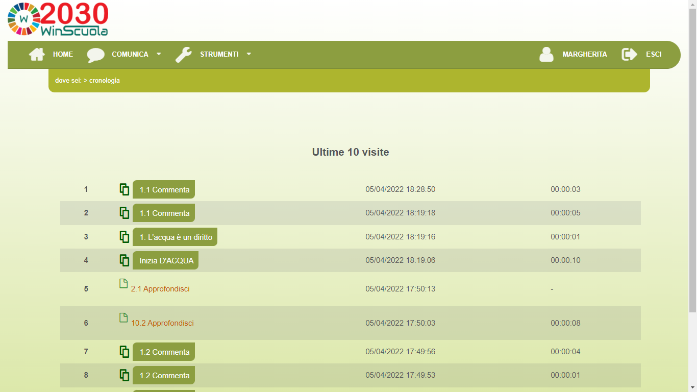 quali contenuti hai visto e quante volte (visite).