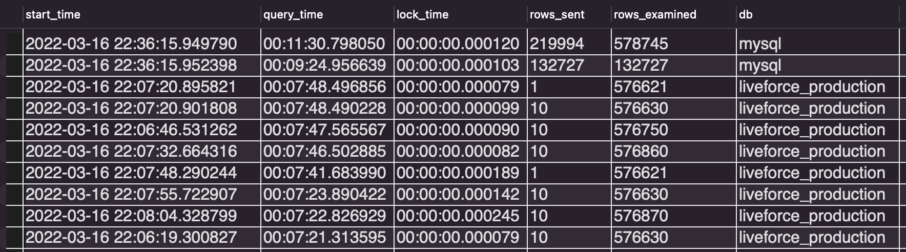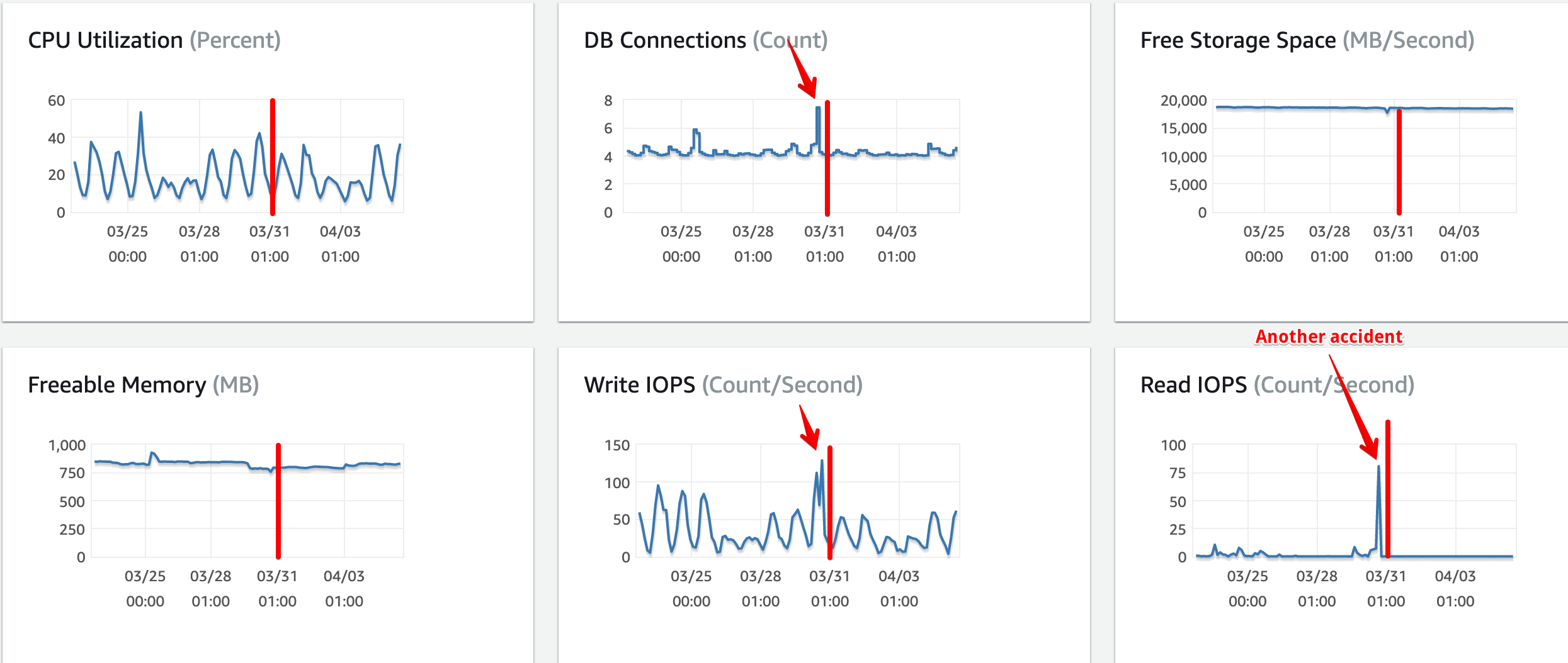 - MySQL slow query logs was enabled after the first accident