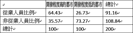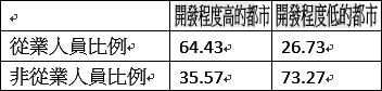 我們是否能從都市開發程度的高低看出工商服務業從業人員比例的關聯?