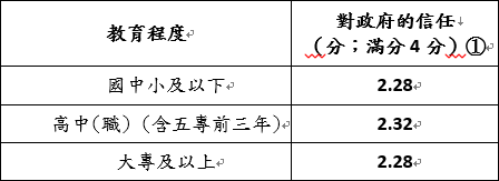 由此可知國民對政府的信任程度,與國民教育程度並無太大的關係。