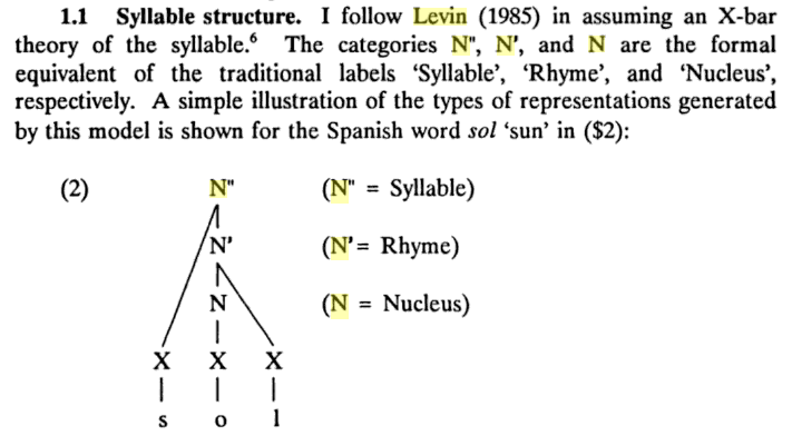 A nuclear high vowel is dominated by N, and a non-nuclear high vowel by N′ or N″. However, Taiwanese Southern Min contains two diphthongs composed of two successive high vowels, namely /iu/ and /ui/. Without a specific sonority scale, the X-theory cannot correctly present their rime structures.