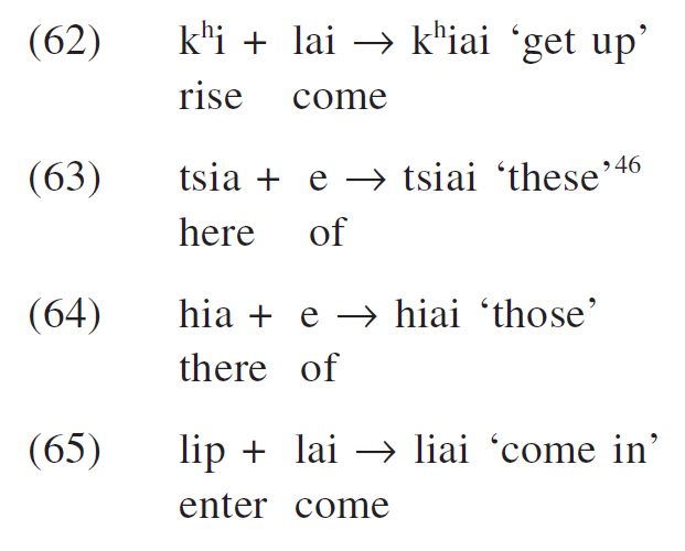 (11) tsa + k i → tsai ‘morning’