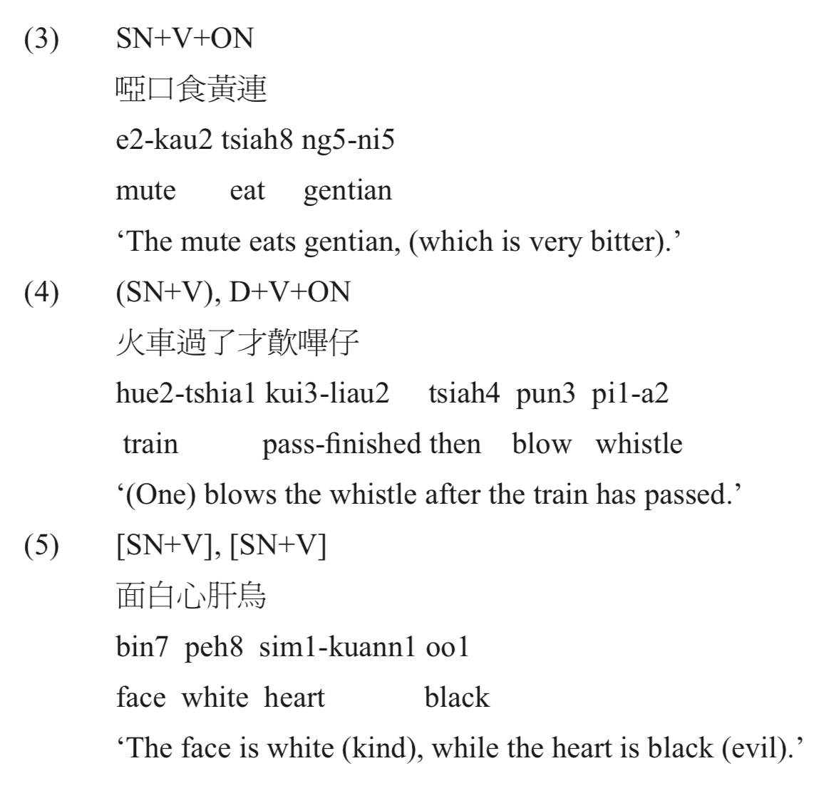 Syntactic Structures of Proverbs in Taiwan Southern Min