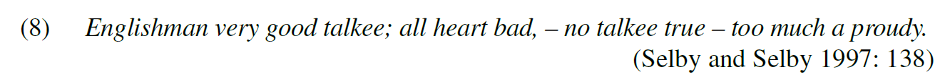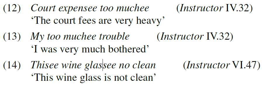 CCP(China Coast Pidgin, Chinese Pidgin English):