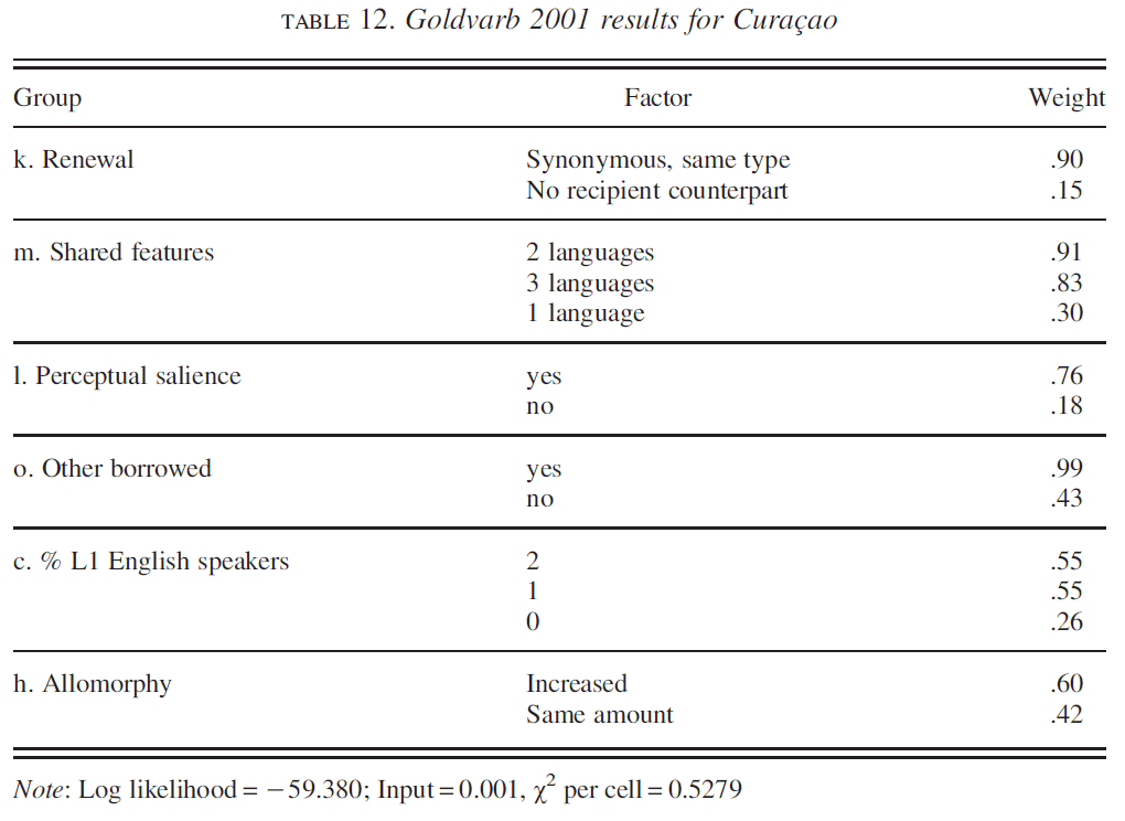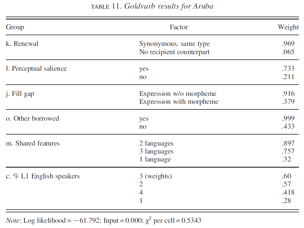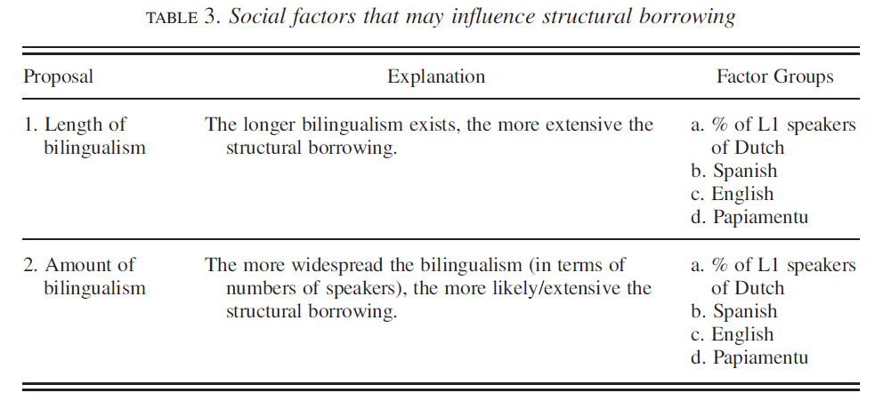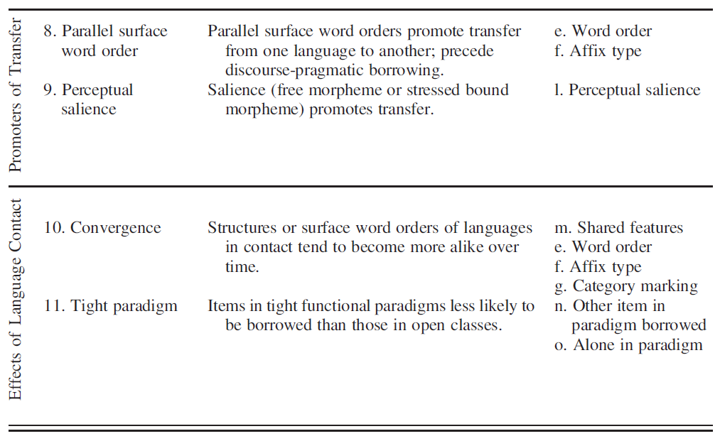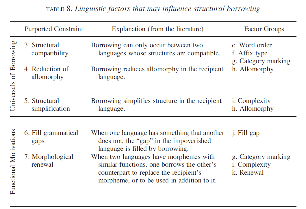 Of the three borrowing universals proposed, none were significant as proposed in the literature.
