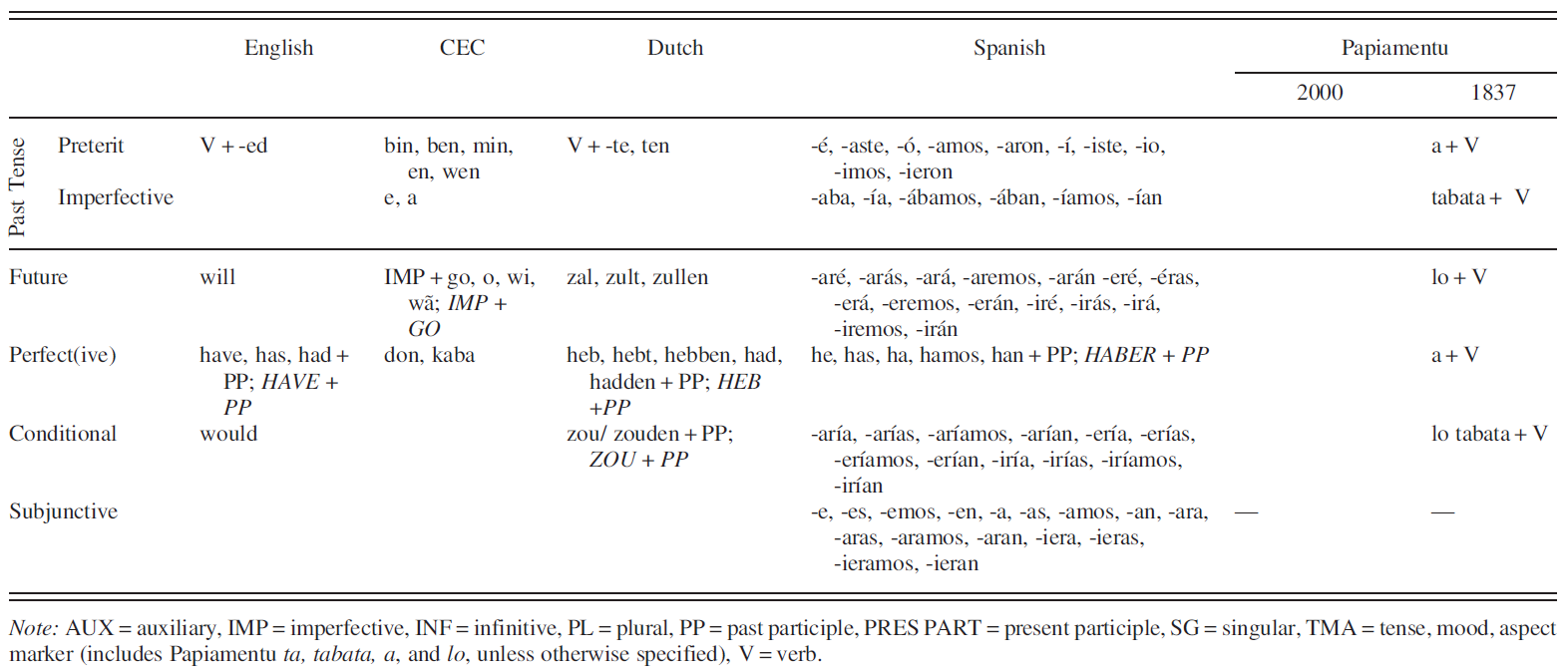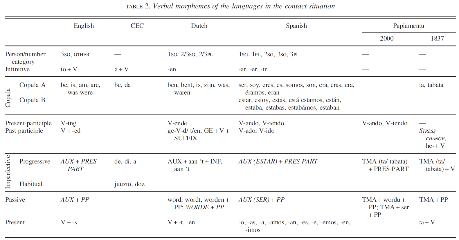 - Contacted languages: Papiamentu, Dutch, Spanish, English and CEC(Caribbean English Creole)