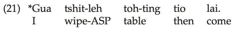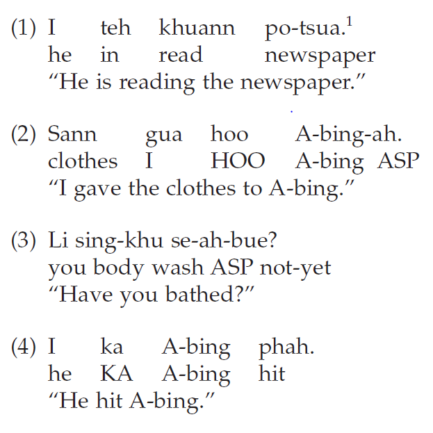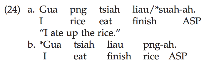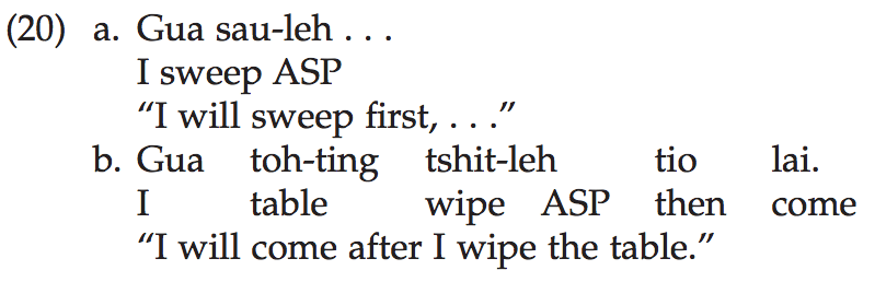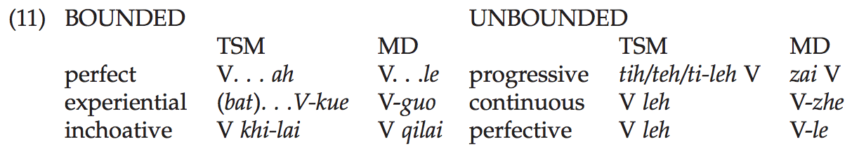 2. Aspect/phase markers(ah、kue、khi-lai、ti-leh, 了、過、著)