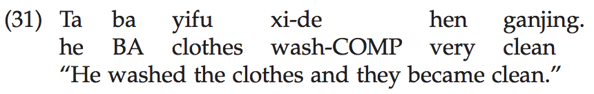 (2)OSV: Pre-verbal object is allowed, but is marked(有標) The object is topicalized