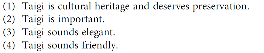 - 目的是欲用較中立的角度,看這馬一般人對臺灣話的態度