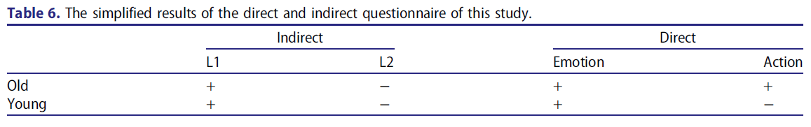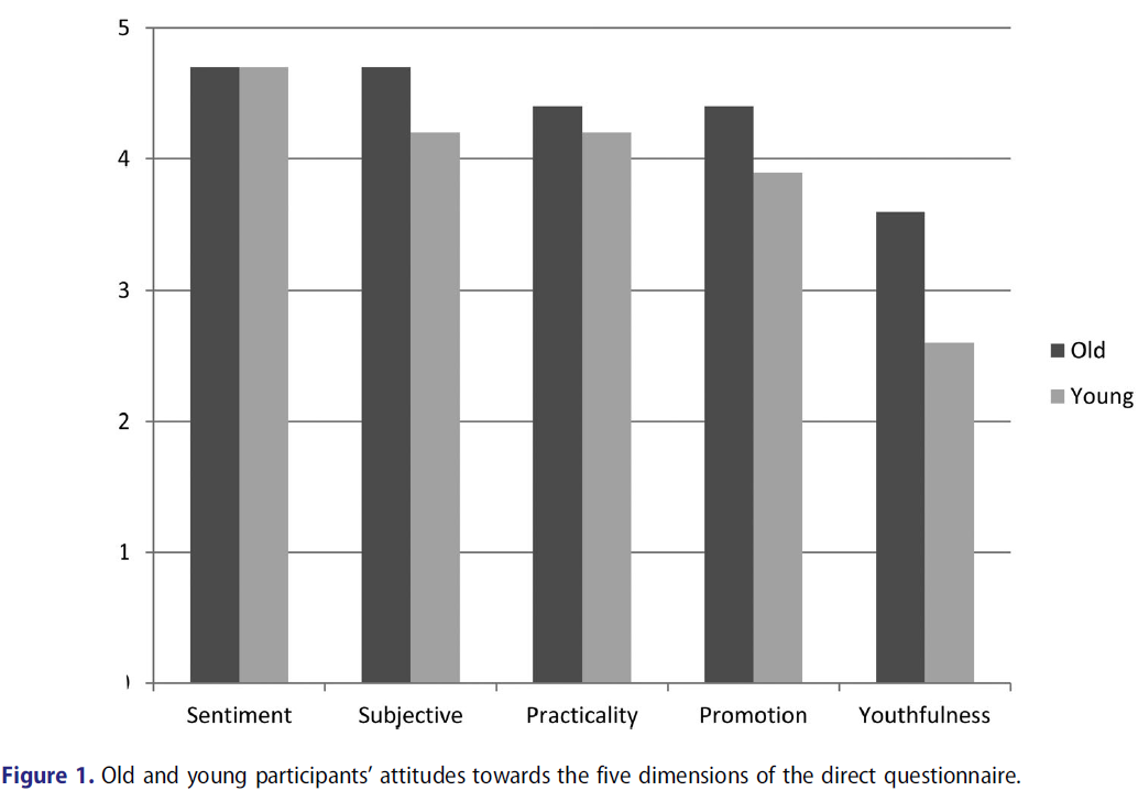 對Young group來講,怹認為Young-H的表現上好,而且是好足濟,甚至講Old-H的分數和另外兩个L的攏差不多,咱會使佇足濟項內面看著這个結果。