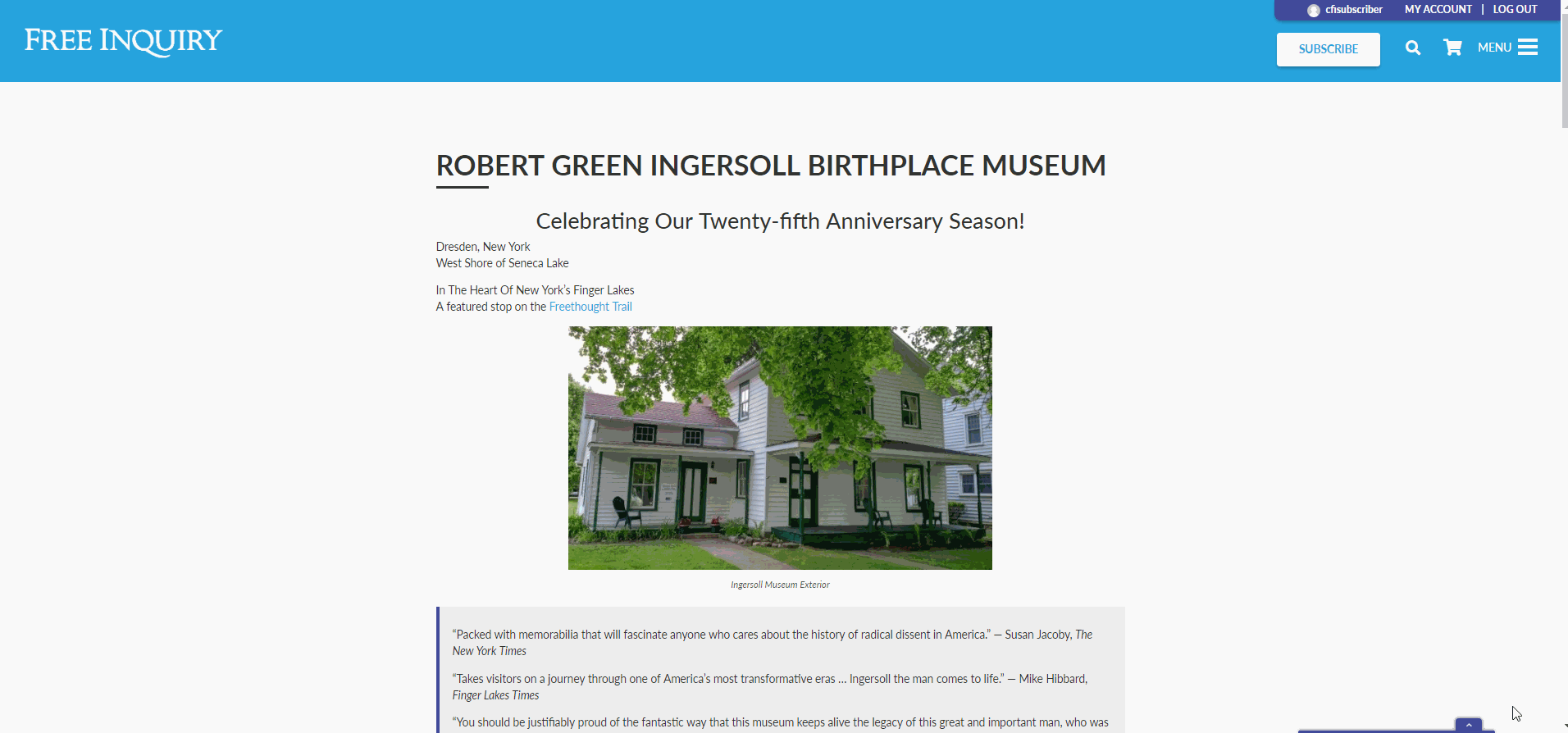 The Robert G. Ingersoll museum is a program of the Council for Secular Humanism.