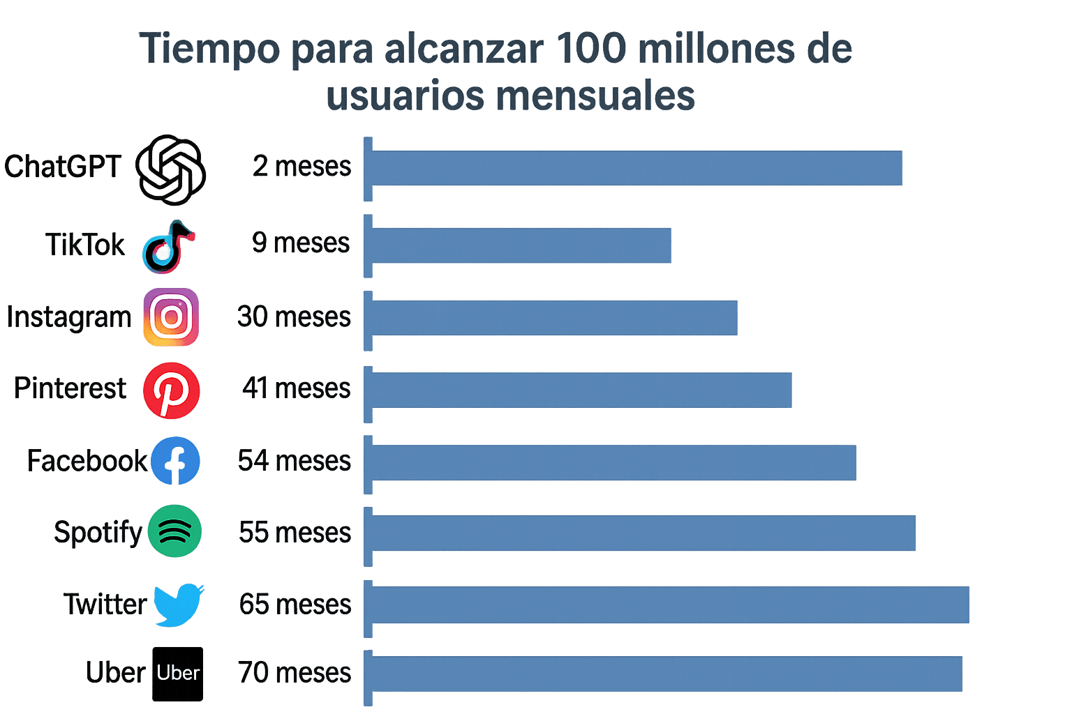 Tiempo en que alcanzaron 100 millones de usuarios mensuales