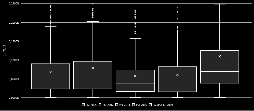Porównanie rozkładu Δpi%j,t dla PSL/PSL-KP 2005-2019