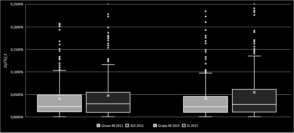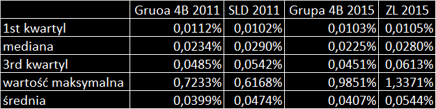 Porównanie rozkładu Δpi%j,t dla Grupy 4b oraz SLD/ZL 2011-2015