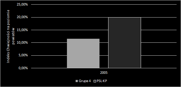 - Nie udało się potwierdzić przejęcia elektoratu SLD przez PD w roku 2005.
