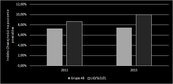 - Udało się potwierdzić przejęcie elektoratu SLD przez TR w roku 2011.