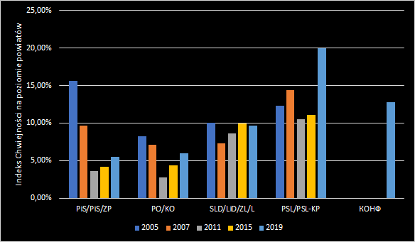 Indeks chwiejności wyborczej elektoratu na poziomie powiatów (PIC).
