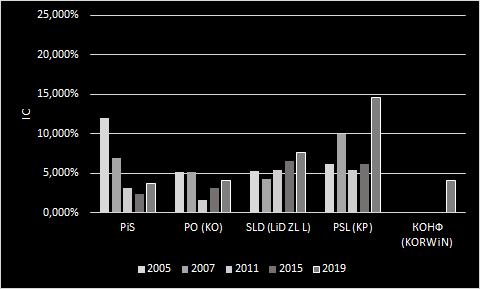 Porównanie PIC dla formacji parlamentarnych 2005-2019
