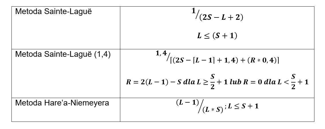 - Metody wyborczej,