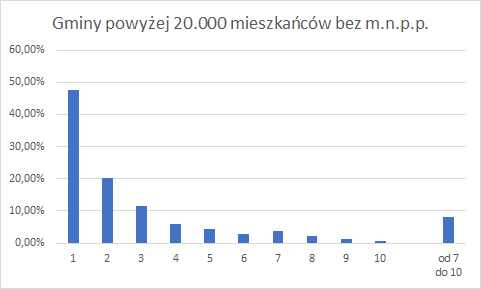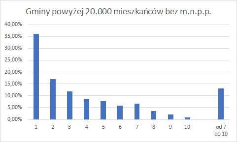 Odsetek głosów na zwycięzcę w gminach poniżej 20.000