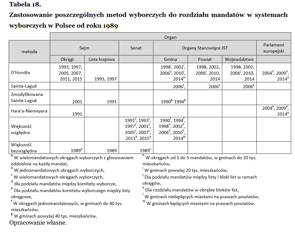 | System proporcjonalny | Udział w głosach daje udział w mandatach | Możliwie idealne odwzorowanie preferencji wyborców |