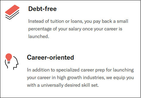Study for free. Contribute 15% of your income for just 3 years when earning $50,000 or more