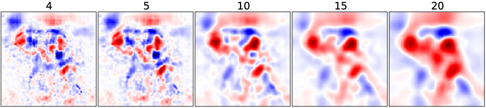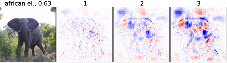 - To estimate what the feature map as a whole is doing, we show the average of the relevance vectors over all units in that feature map