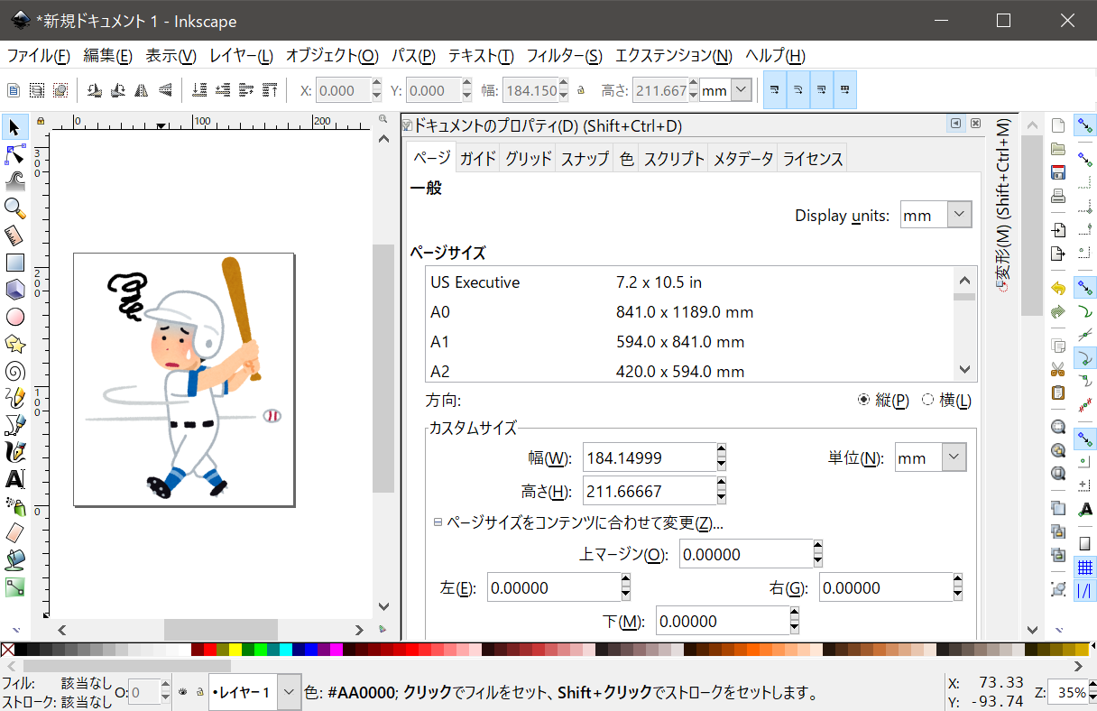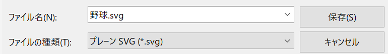 ファイルの種類はプレーンSVG(*.svg)にして、保存
