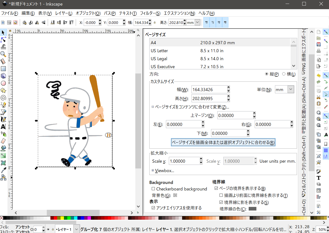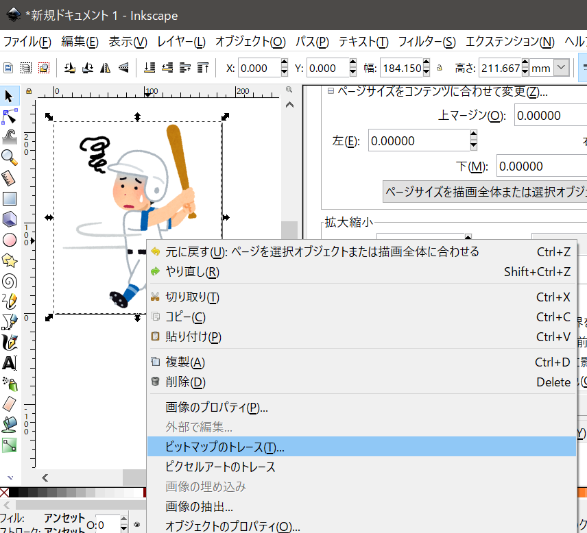 「ページサイズを描画全体または選択オブジェクトに合わせる(R)」