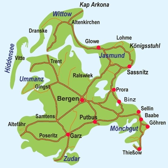 Rugia to największa wyspa Niemiec. Oddzielona jest od lądu tylko wąską cieśniną, przez którą prowadzi most. Stanowi jedno z ulubionych miejsc wypoczynku znanych osób. Utworzono na niej Park Narodowy Jasmund.