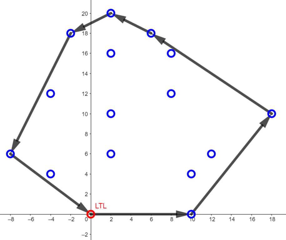 // Pt on edge won't be considered part of the CH, uses function "cmpltl" and Pt "LTL"
