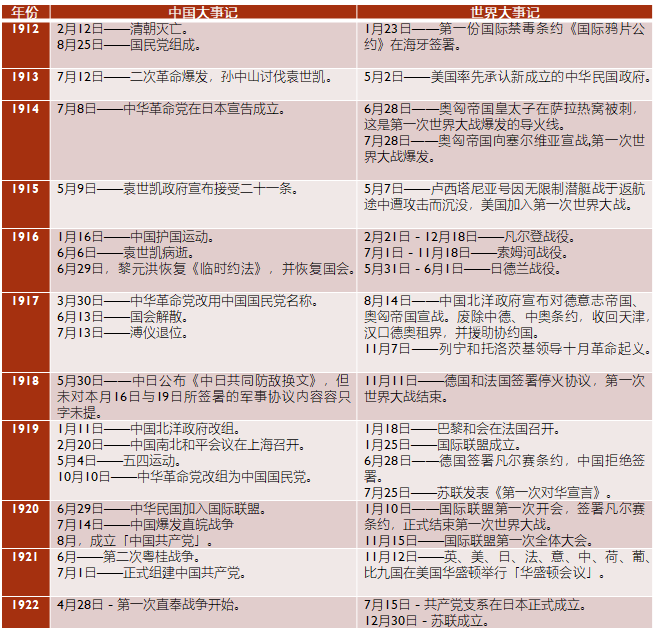 1912-1922大事年表