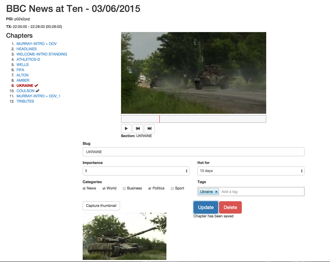 Extensions to the BBC Slicer UI to enable editorial control of the Catch Up News product.