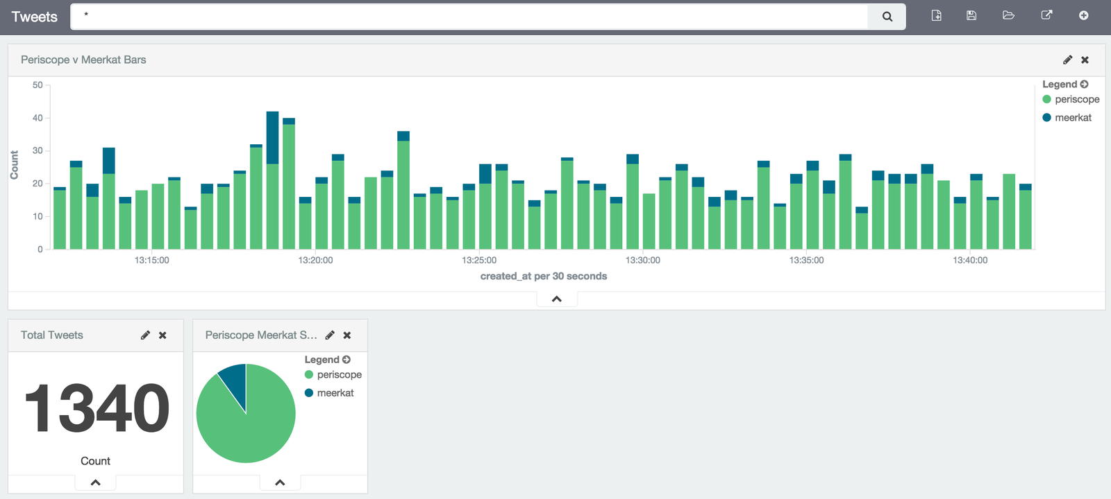 Periscope and Meerkat video events are retrieved using the Twitter streaming API and indexed.