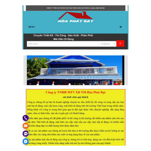 Mái Bạt Di Động Hòa Phát Đạt chuyên sản xuất, gia công các loại bạt che nắng mưa, ô dù quán cafe, dù sự kiện. Địa chỉ: số 95, kp Nhị Đồng, P. Dĩ An, Tx Dĩ An, Bình Dương, Việt Nam Sdt: 0981899600