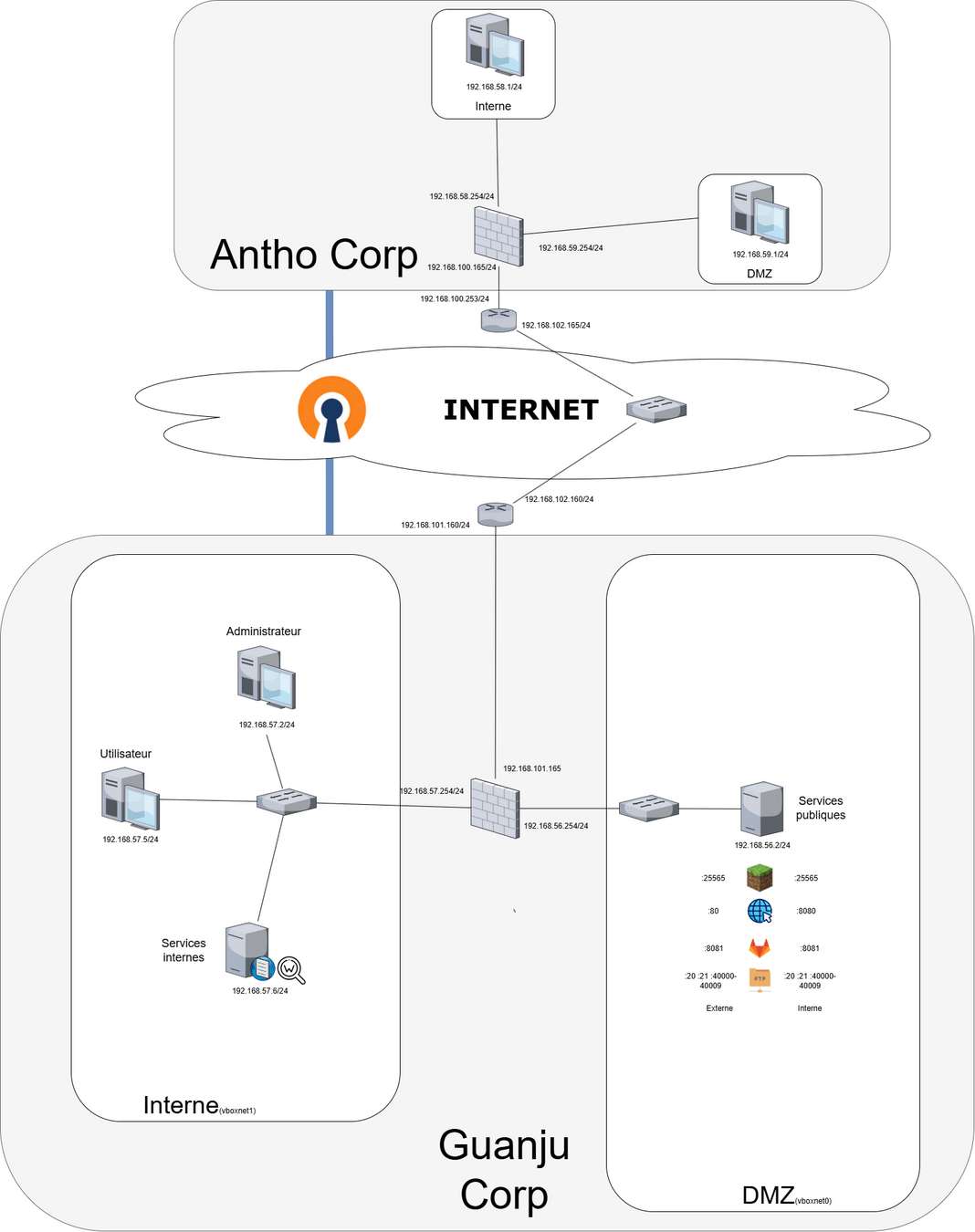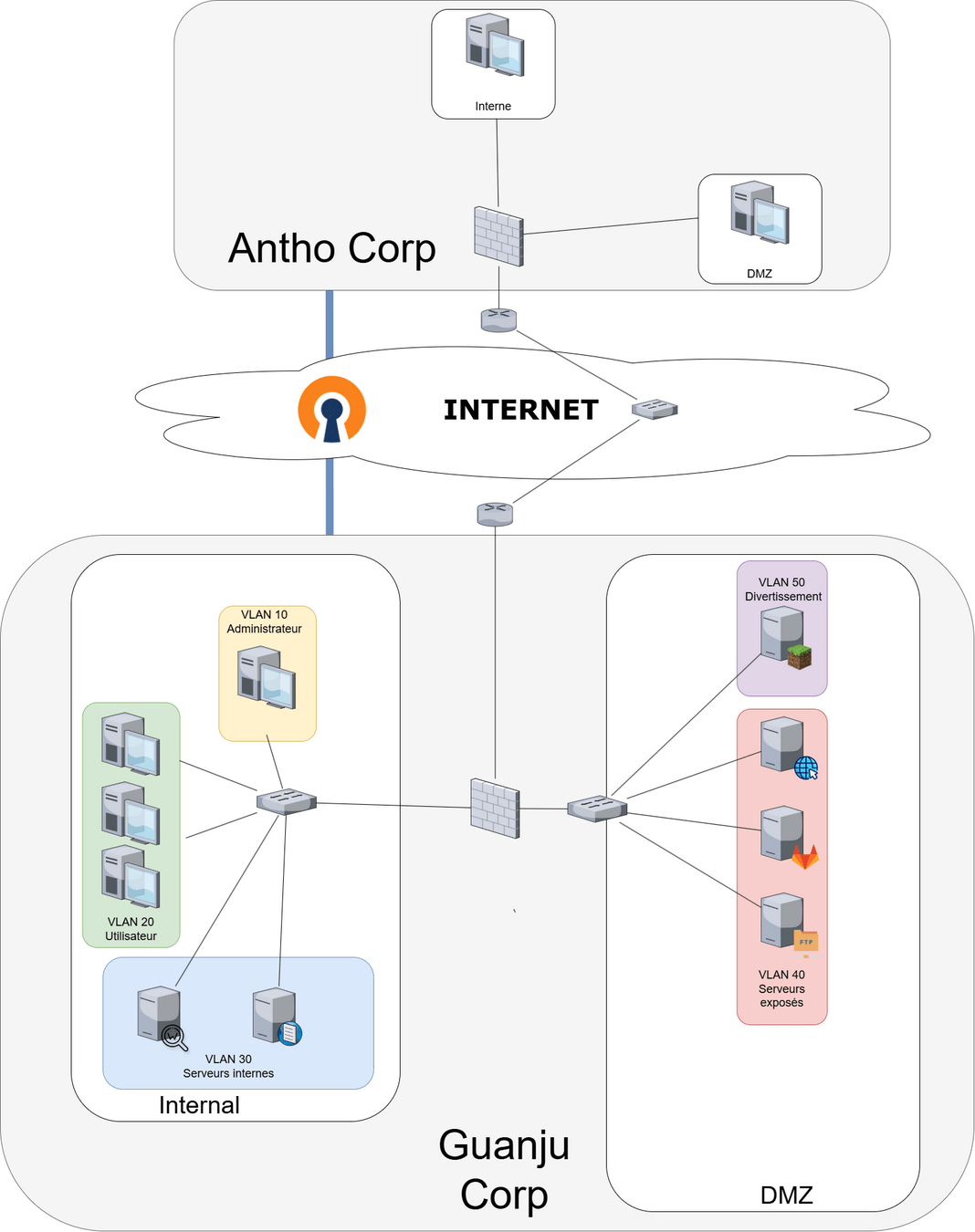 - Tout le trafic passe par le firewall