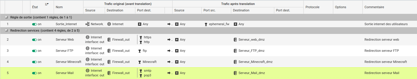 Règles NAT