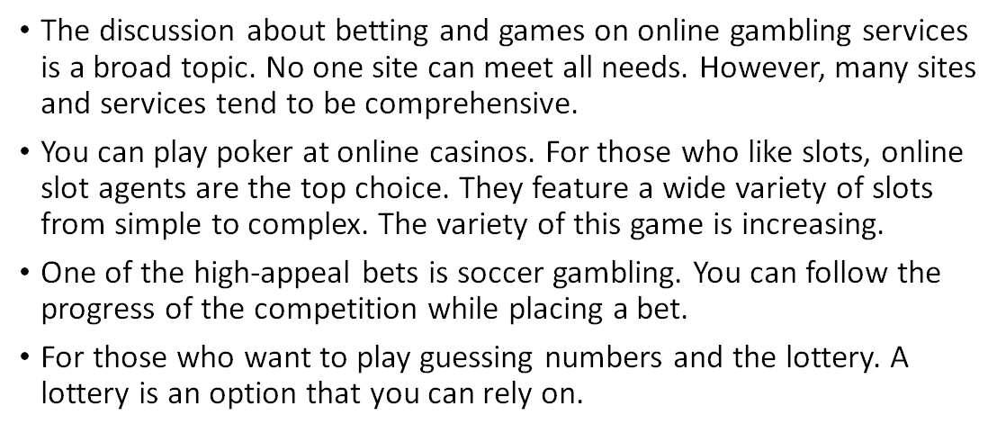 There are two types of gambling services, namely providers as well as developers and agents. Providers create and develop games including providing servers. The agent only manages the platform for accounts and transactions. The game menu will point to the server at the provider. The two of them work together to provide a 24-hour service trusted online casino 2021 in Malaysia.