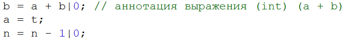 b = a + b|0; // аннотация выражения (int) (a + b)