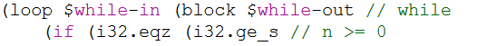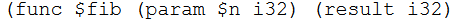 (set_local $n (i32.sub (get_local $n) (i32.const 1))) // n = n - 1